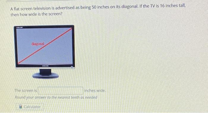 Solved A Flat Screen Television Has A 50 Inch Diagonal And A Height Of 25 Inches How Wide Is The Television Rounded To The Nearest Tenth Use The Pythagorean Theorem Answer Inches